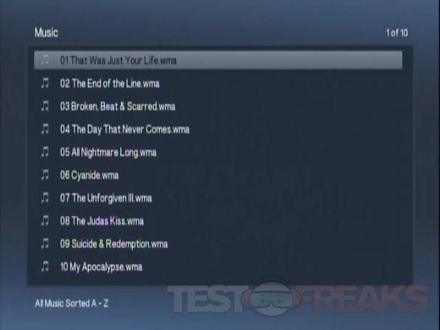 Clicking on Music will list your music A-Z sorted.