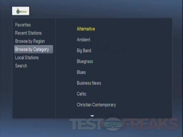 vTuner is internet radio and it offers a ton of stations to listen to and sorted various ways.