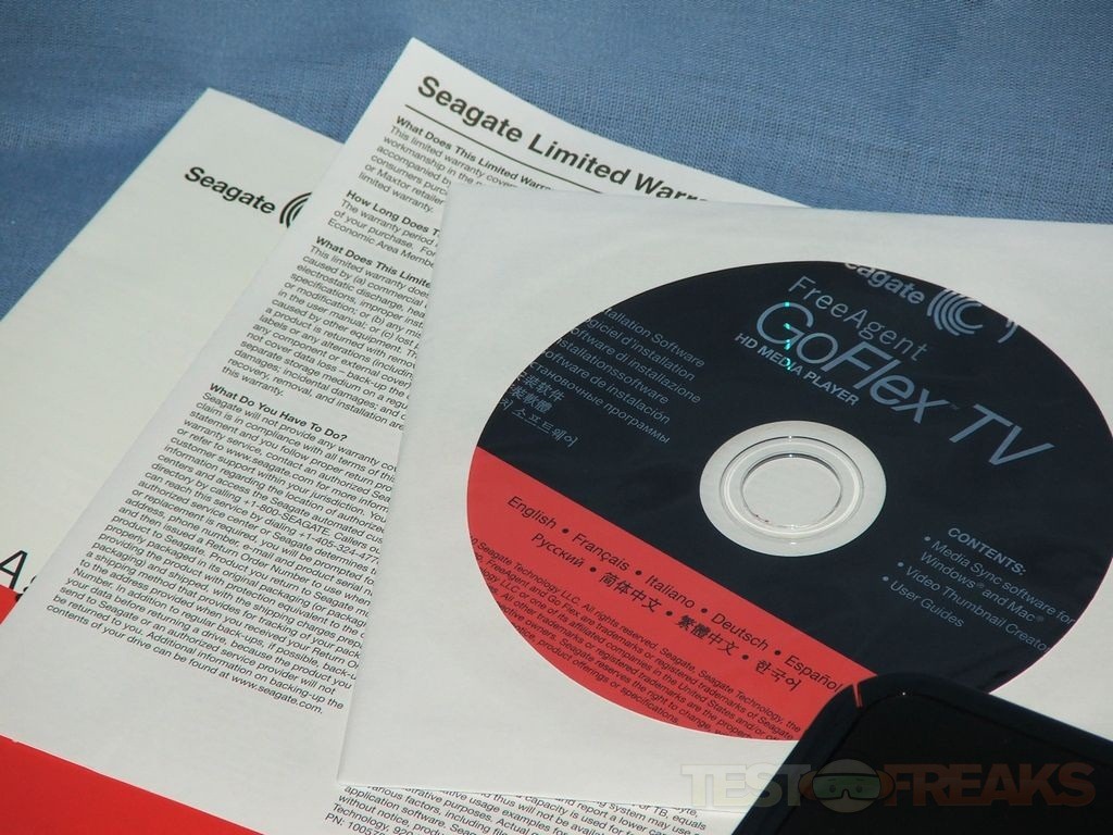 Included with the GoFlex TV is a brief instruction manual, remote control, power supply, CD, batteries, component cables and composite cables. The remote is small, but it works very well.