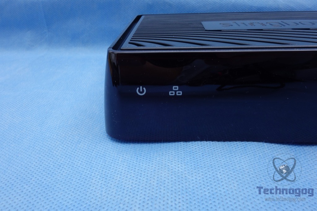 Looking at the front of the Slingbox M1 we see icons for power, network connectivity and the Slingbox logo. Unlike the Slingbox PRO HD there is no “Cylon” like activity light moving when someone is connected to the Slingbox.