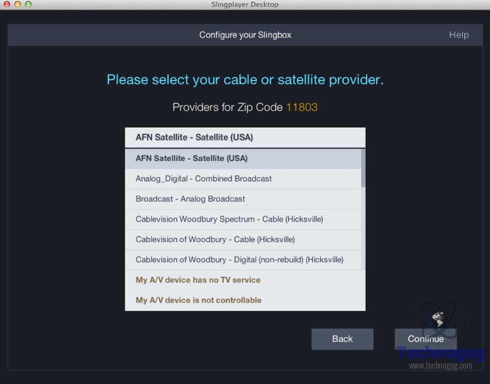 During this process the Slingplayer may update the software on the Slingbox M1. Once done, you can name the Slingbox M1 then choose your content provider and input the model receiver type that is connected to the Slingbox M1.