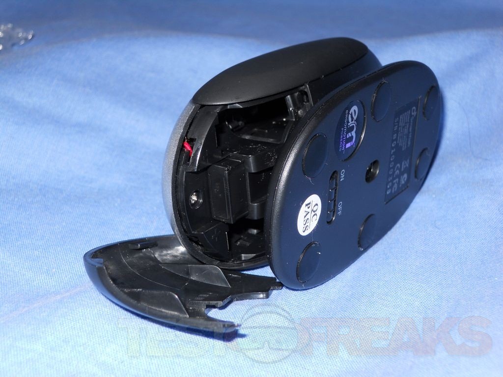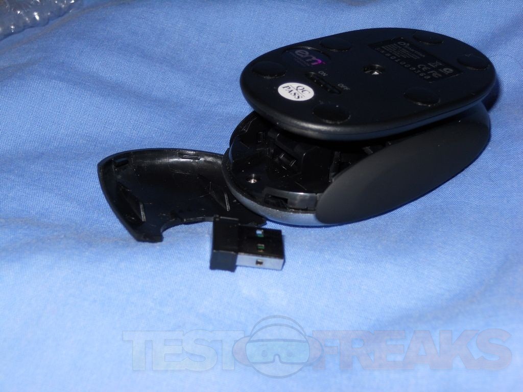 On the bottom of the actual mouse is a door where the batteries go and you’ll find the mini USB receiver there. The receiver can be put back in when not is use for storage and transport so you don’t lose it.