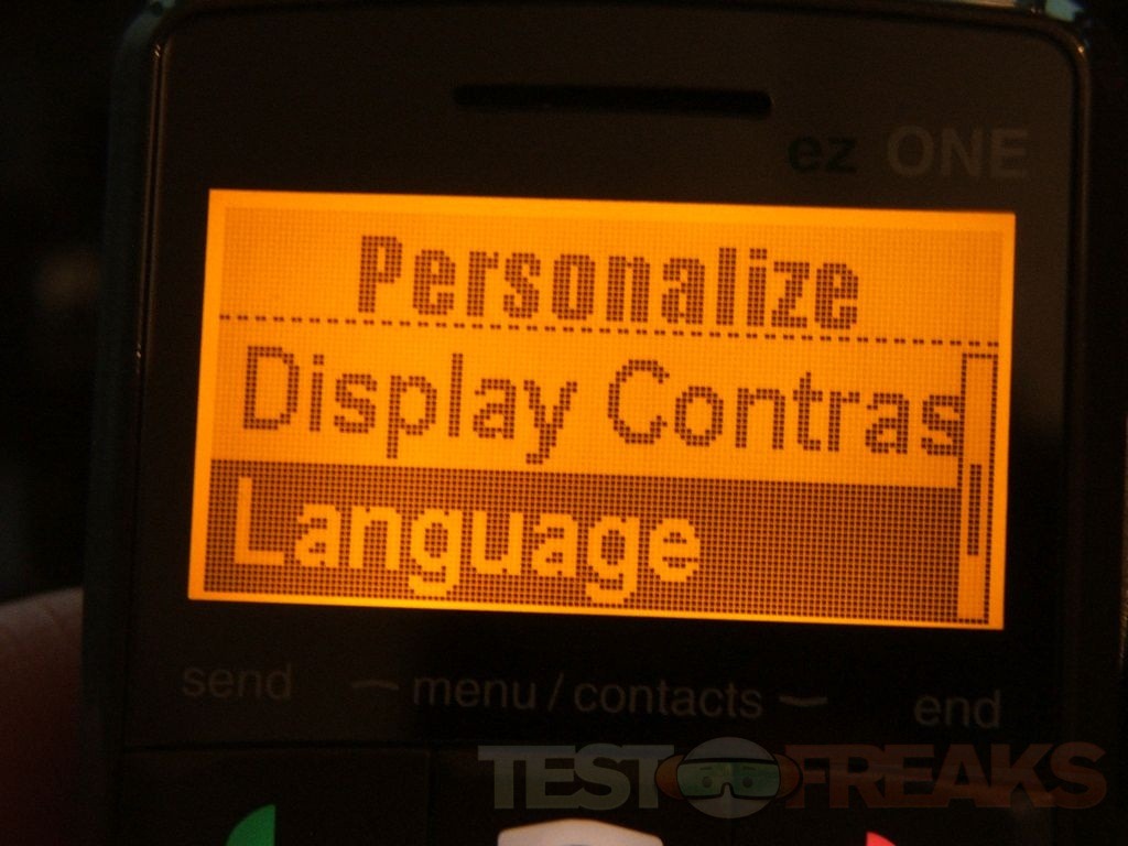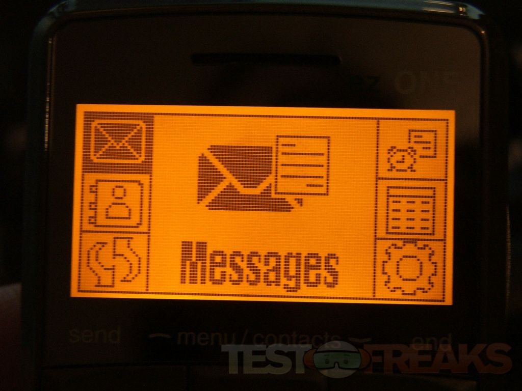 The directional button is just two ways up for menu and down for contacts. The menu is sparse, but again, with this phone you don’t need much at all. The phone does allow you to send text messages, you can store up to 100 messages.