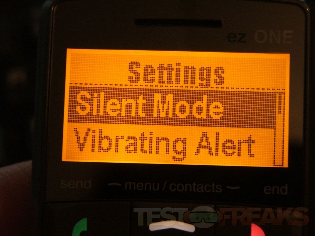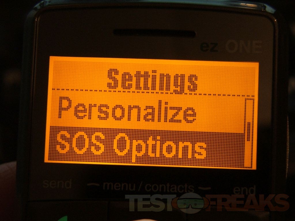 The last thing is Settings where you’ll find options for Silent Mode, Vibrating Alert, Personalize, SOS Options, Speaking Keypad on and off, and Reset to Defaults.