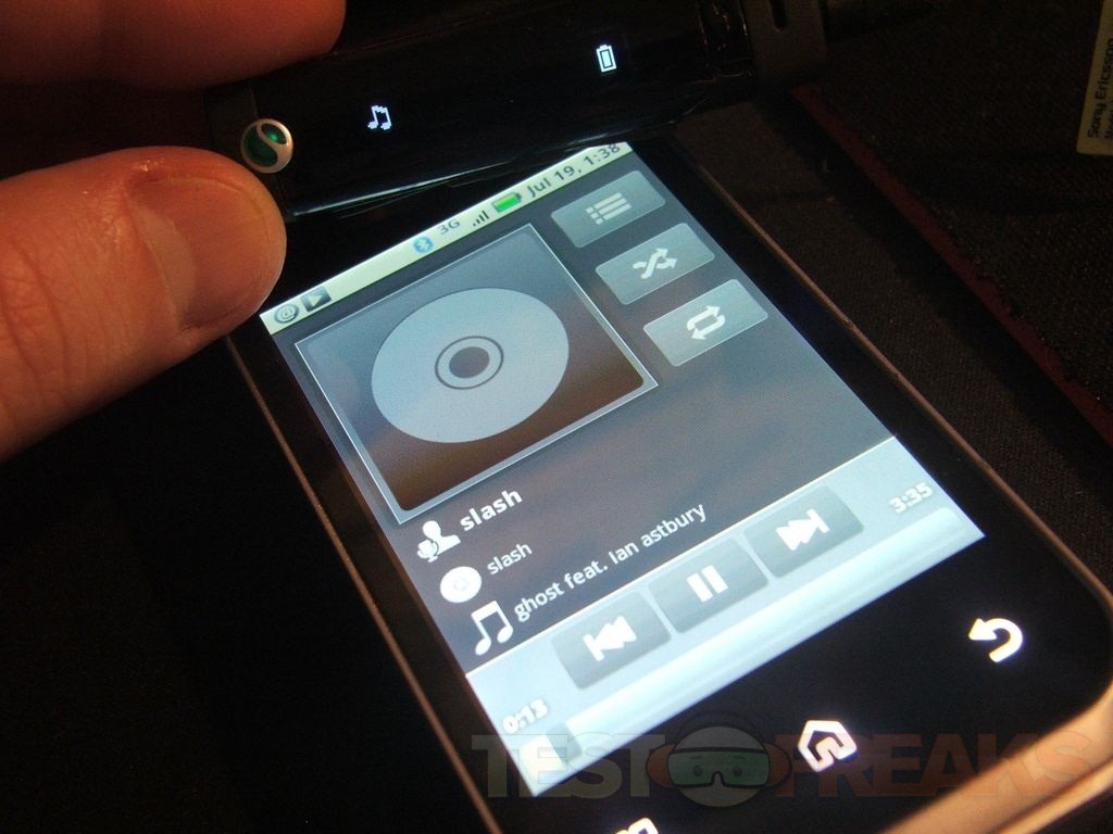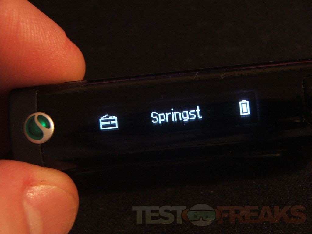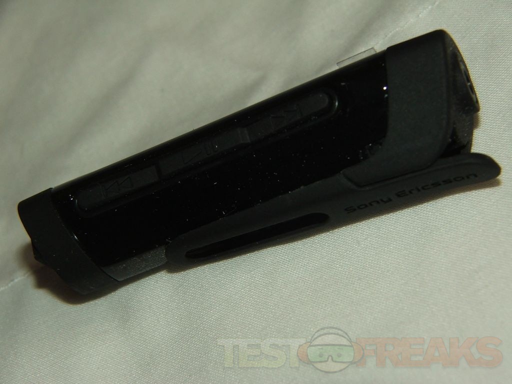 On the front is the phone answer/end button and the microphone, on the bottom is the Sony Ericsson logo.