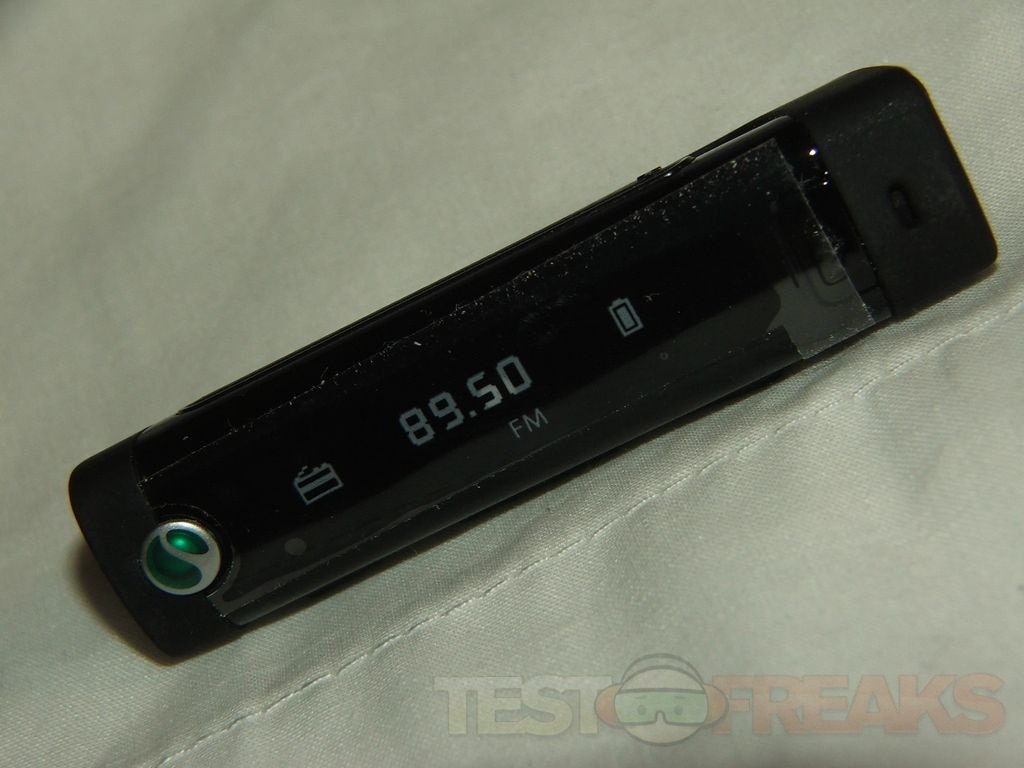 To switch between bluetooth connection and the FM radio you hold in the play/pause button, the selection shows on screen and you use the volume button to move the indicator. The following picture was taken before I paired my second phone so it only shows the radio and one phone, but after I paired the Backflip a second phone icon appears there, then they have number on them 1 and 2 as you might expect.