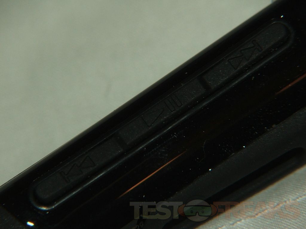 On the right side, or bottom actually is three controls for play, pause, forward and backward, but there also used for changing stations in the FM radio and for changing modes like going from bluetooth connection to the FM radio.