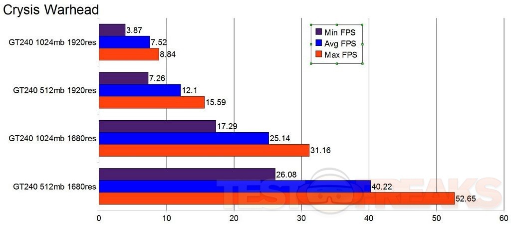 Another game I tried out is Crysis Warhead, same thing at 1920×1080 and 1680×1050 resolutions.