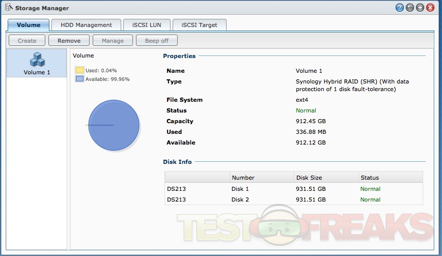 In terms of noise the DiskStation DS213’s fan is fairly quite. Unless you have the NAS on your desk you will probably not hear it over the ambient noise of your work environment. According to Synology this unit consumes 18.48W during hard drive access and 8.28W while hibernating.