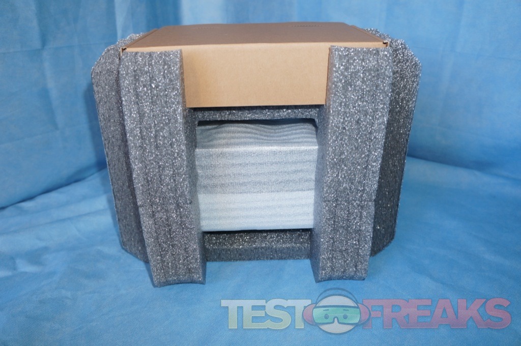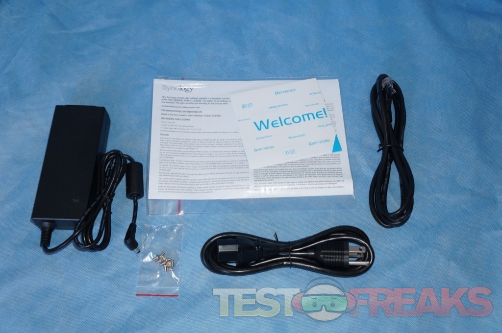 Our review unit arrived in a simple brown cardboard box with the Synology name on one side and the DiskStation name on the other. Inside the package we find the unit encased in two large foam blocks keeping it safe during transport. Along with the DiskStation 214play there are two cardboard boxes containing a power adapter, power cord, LAN cable, extra screws, quick installation guide and warranty information. The unit is sold diskless and can use 2.5” or 3.5” hard drives as well as SSD for storage.