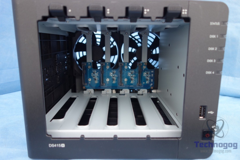The maximum storage capacity for the DS415+ is 24 TB (4 x 6TB). For our review we tested the unit with four 3TB Seagate NAS drives that were provided by Synology. The DS415+ supports both SATA II and SATA III speeds.