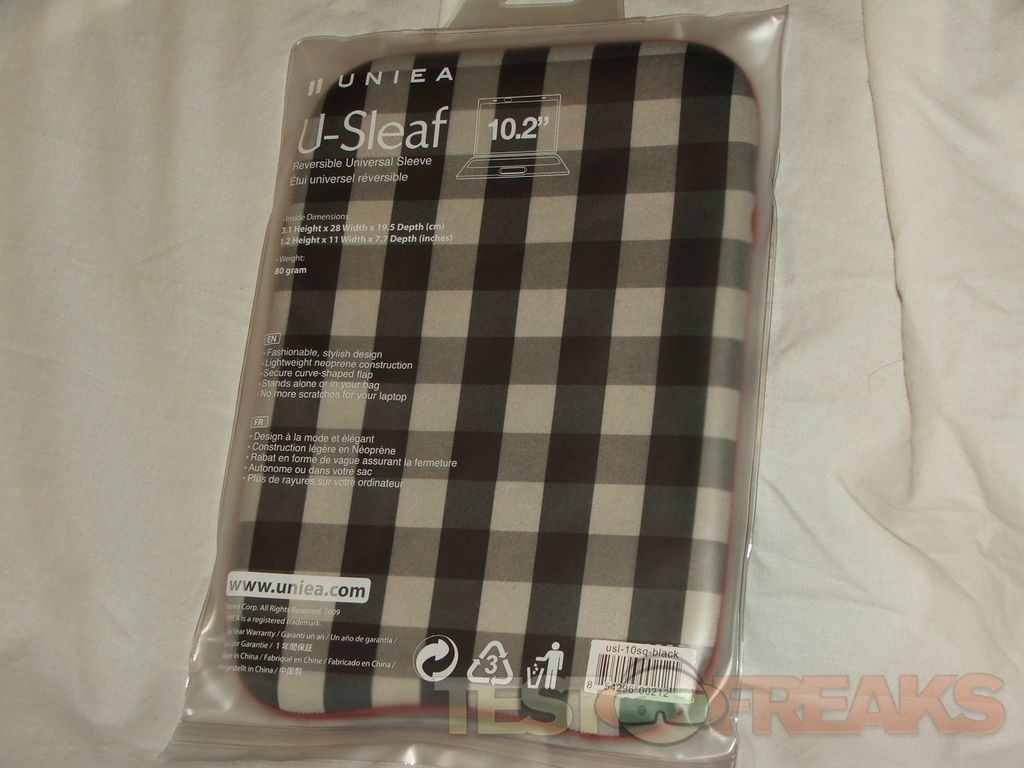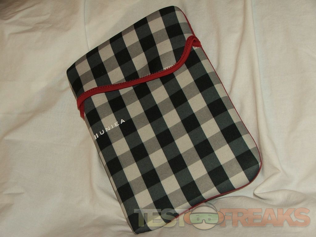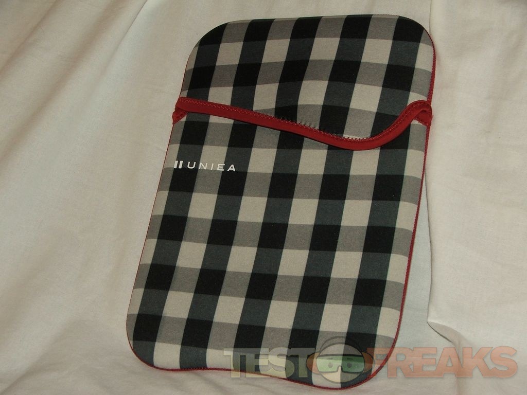Today I’ve got a quick review for you of a product from a company called Uniea. They’ve recently introduced a new line of sleeves for netbooks called the U-Sleaf, January 4th actually and they have an MSRP of $19.99. These are made from neoprene and can be used alone or you can put them in a bag, but what makes them special is that they are reversible. The U-Sleaf I have today is is black and white on one side and solid red on the other. It’s a simple product that will offer basic protection for your netbook from scratches and minor bumps. The U-Sleaf doesn’t have any zippers or pockets, you just slip your netbook inside and you’re ready to go.