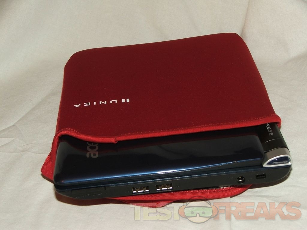 As far as testing well, I put it in a bag with my other stuff, I took it with me in the car as is, just tossed it on my seat and my netbook seems no worse for wear. You have to remember it’s not meant to offer full protection like a case or bag would, it’s just a simple and easy way to protect your netbook from scratches when you don’t want to carry a full sized case with you. If you want to travel light then this is the way to go. The U-Sleaf doesn’t add really any bulk to your netbook so it will fit in other bags if need be. It’s a nice way to add an extra layer of protection to your netbook.