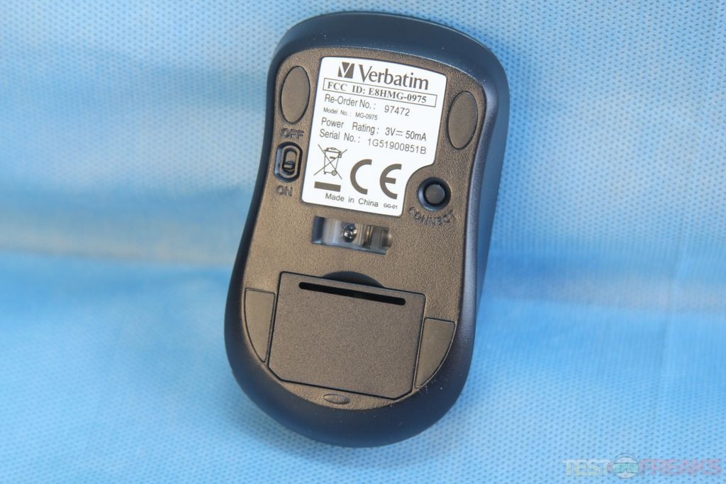 The mouse is all black as well with a piano black finish on its top surface; the Verbatim logo seen on the top center of the mouse. It is a two button mouse with a scroll click wheel in the center. This mouse is more laptop than desktop in terms of form factor.