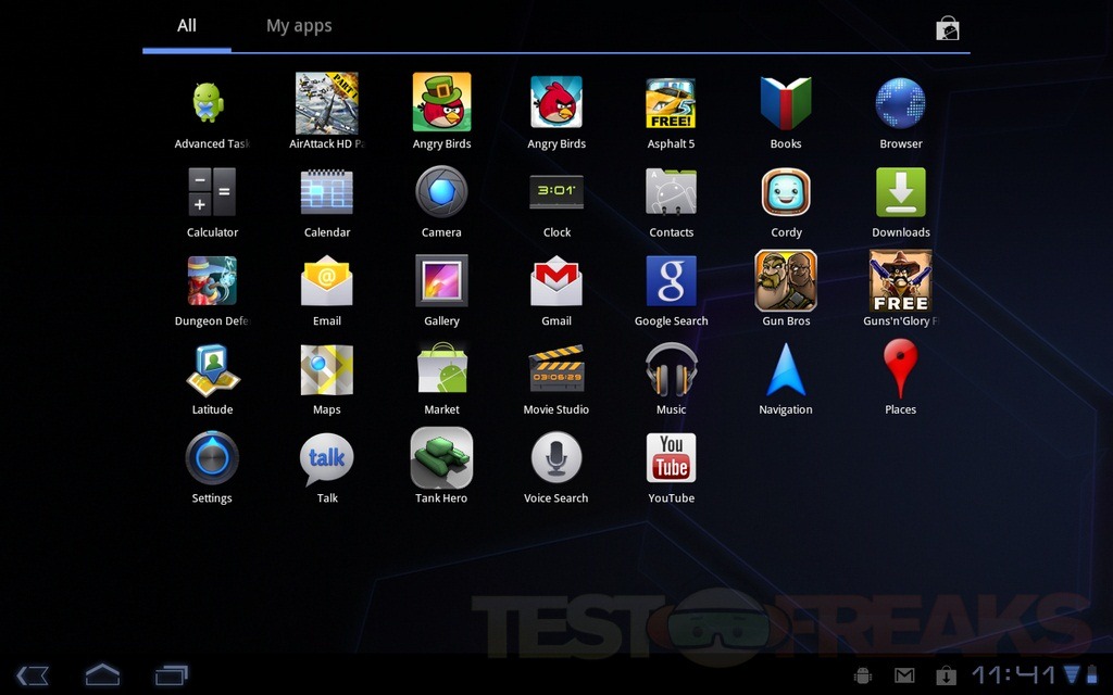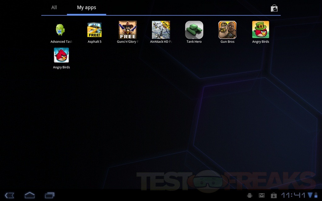 In the apps section you won’t find much, just the basics really. I added Angry Birds, Gun brothers, Guns n’ Glory, Air Attack and Asphalt 5, the rest is stock.