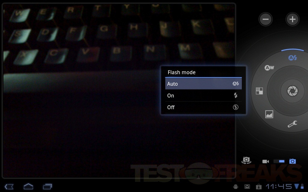 On the back of the Xoom you’ll find the power button, stereo speakers, camera and a flash.