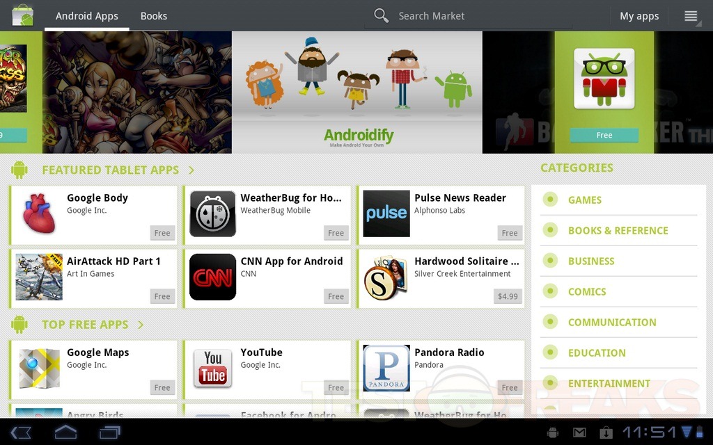 The Android Market: a one-stop shop to download your favorite books, apps and games. Read, watch and play your favorite content on the go.