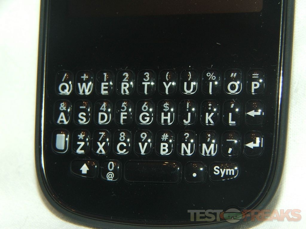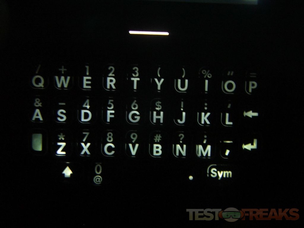The Palm Pixi Plus keyboard does light up but it really isn’t that bright. The following picture was taken in almost total darkness, and as you can see it’s not too bright. For me I don’t really like the keyboard at all, it’s just too small, my thumb easily covers six keys at a time and that’s not very good when trying to type on it. You can type on it, just not fast at all.