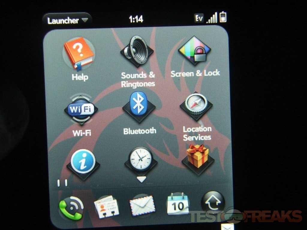 Once you unlock the phone there’s a few icons at the bottom of the screen Phone, Address Book, Email, Calendar and Settings or Menu.