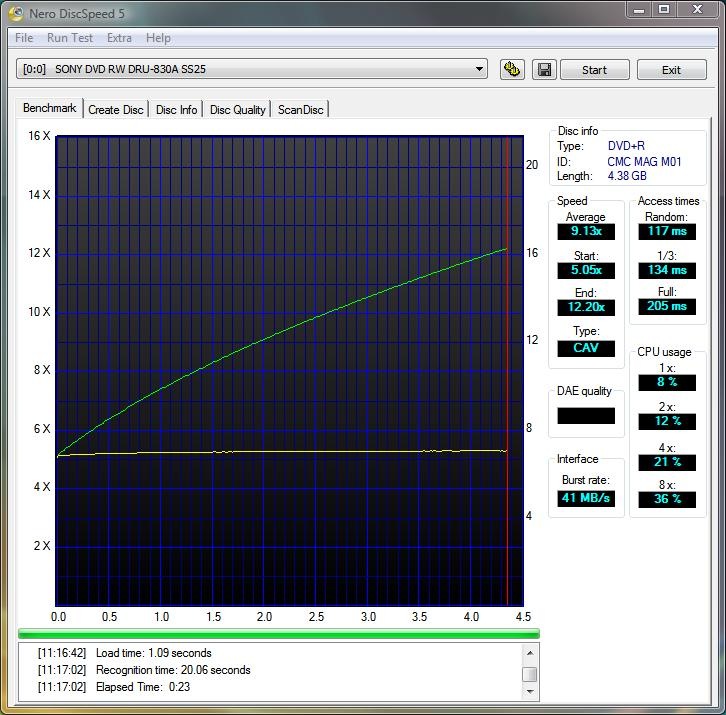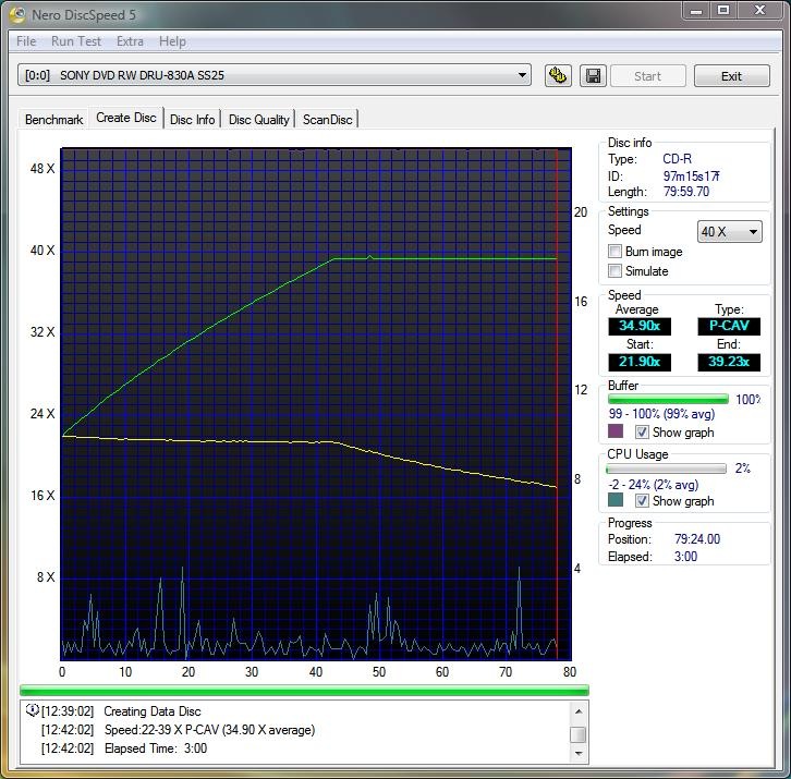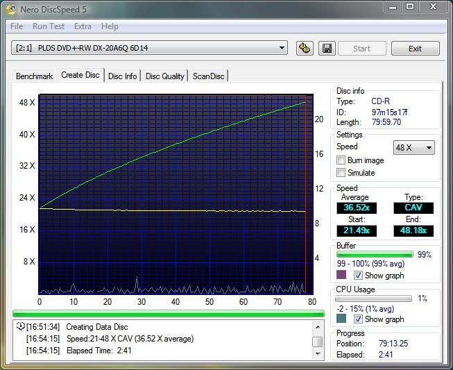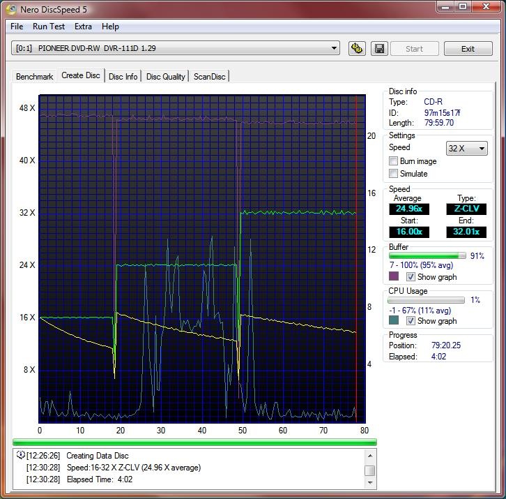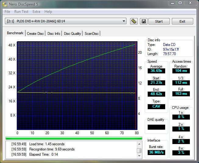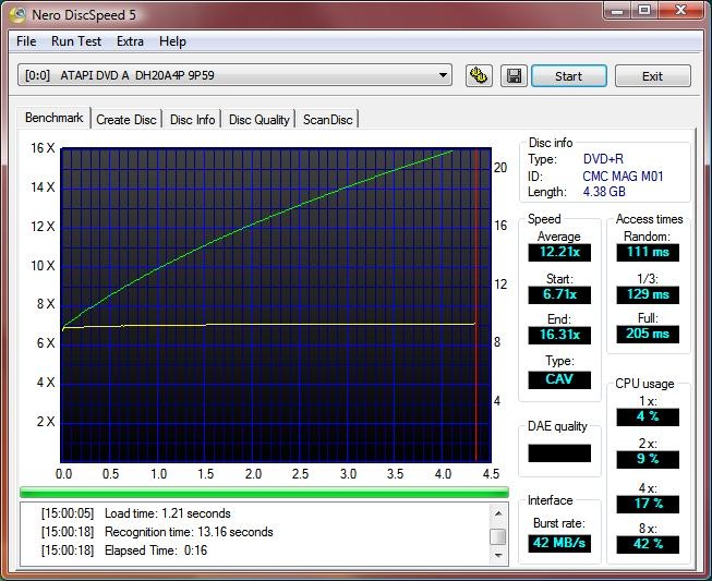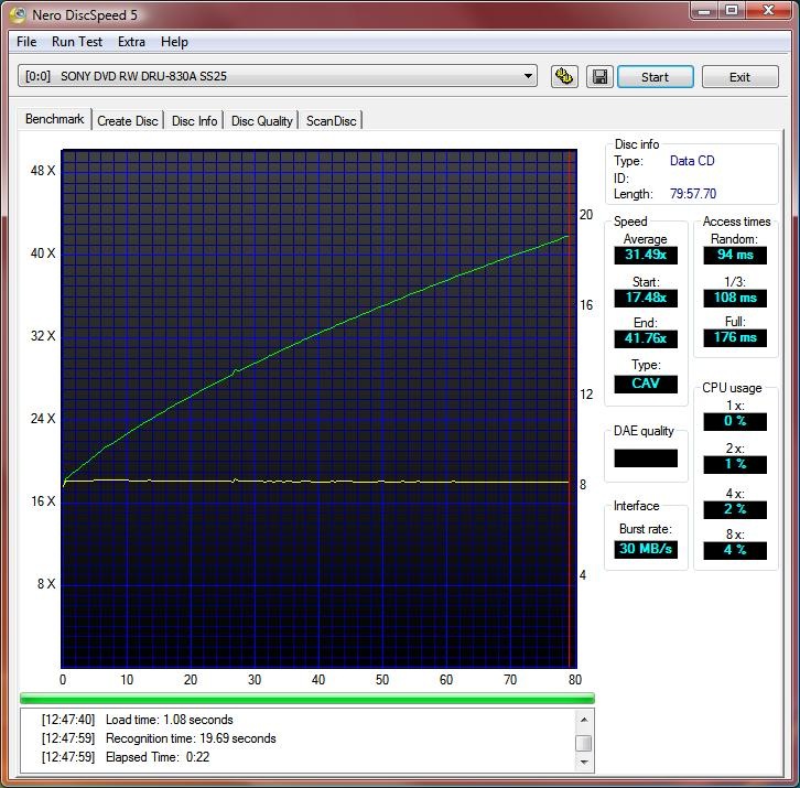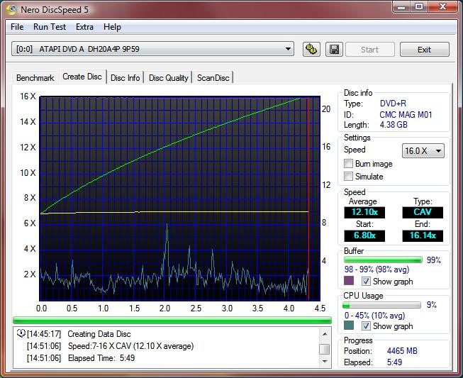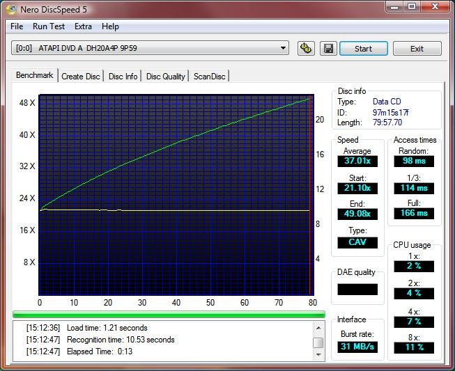 I used Nero CD/DVD speed to test all of the drives creation time and benchmarks as well for both CDs and DVDs. I used 52x CD media and 16X DVDR+ media for testing.