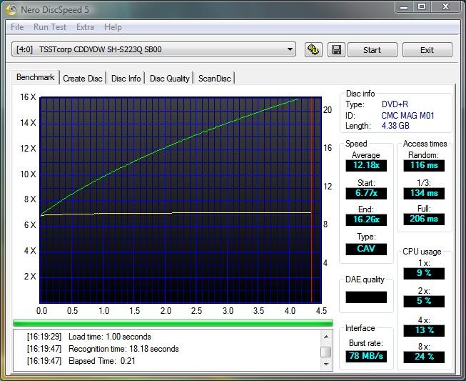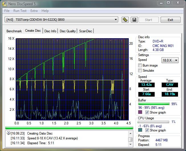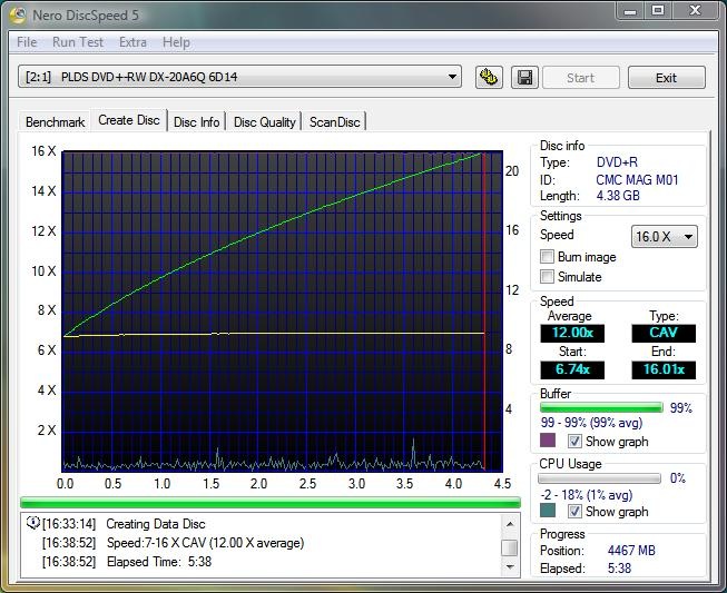 I also noticed the Samsung tops out at a speed of 18.19X using the 16X media, so I’m guessing that’s the SpeedPlus kicking in there… I’m sure if I could fine media that burns at 22x it would be a bit quicker at DVD creation.