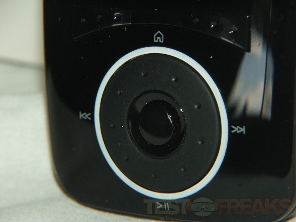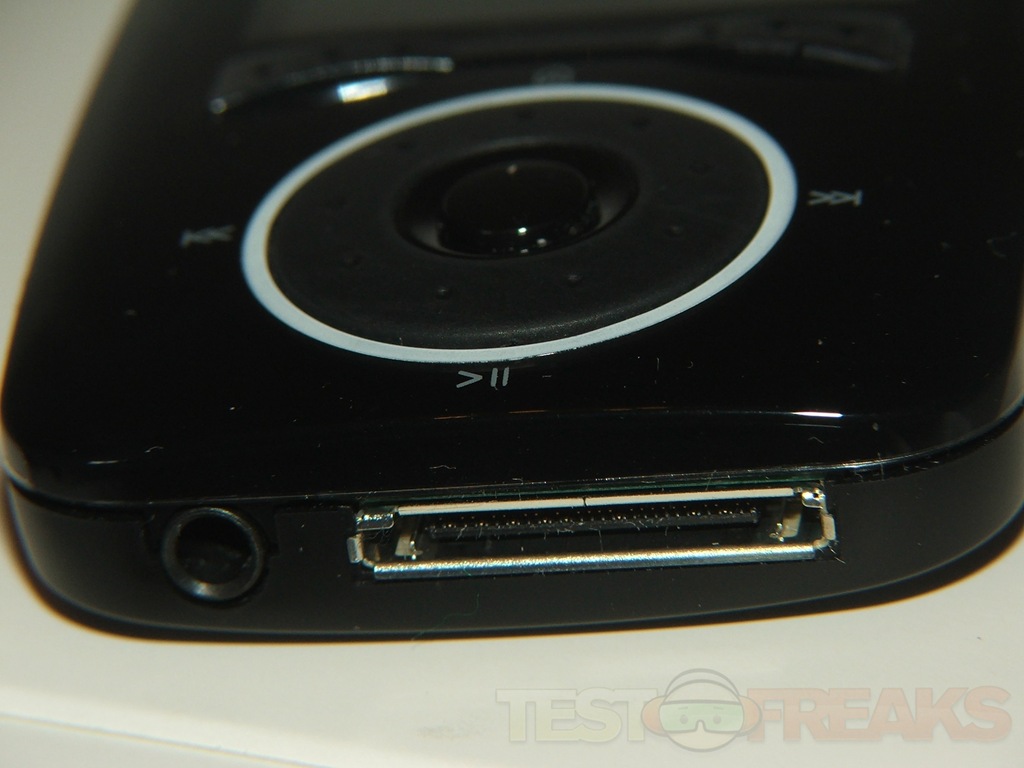 On the front, below the screen is where you’ll find two buttons and the navigation dial with a center button. It’s not touch enabled like the iPod is, but it just spins.