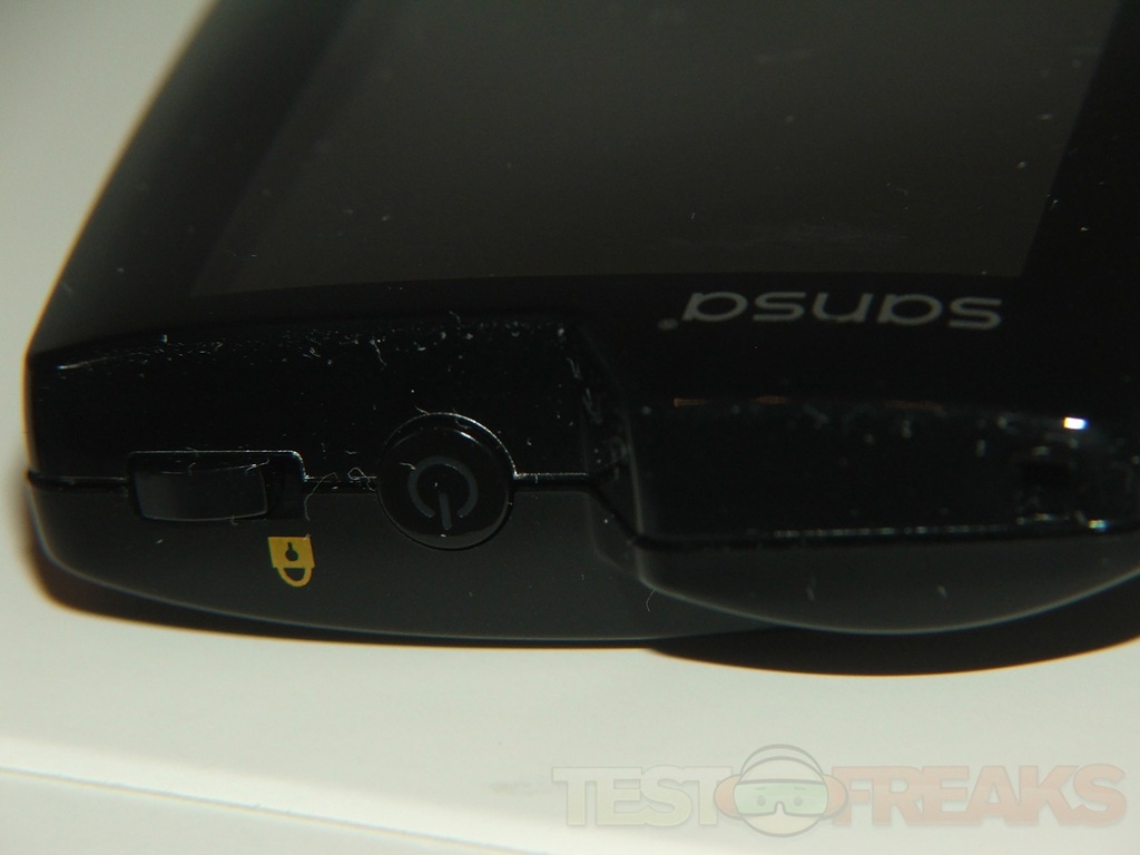 On the bottom is the sync port, while the left side has a volume button, the top has the power button and a sliding lock, and the right side has the microSD slot. A nice included feature is that there’s a speaker built-in so you don’t always have to use the earbuds like most players.