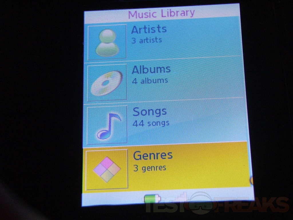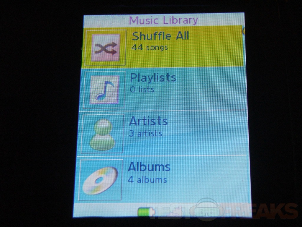Under music you’ll find the basic stuff, Artists, Genres, Playlists, Songs, Albums and A Shuffle All option as well. It does not automatically add album covers though, so you’re stuck with the default graphics until you manually add them.