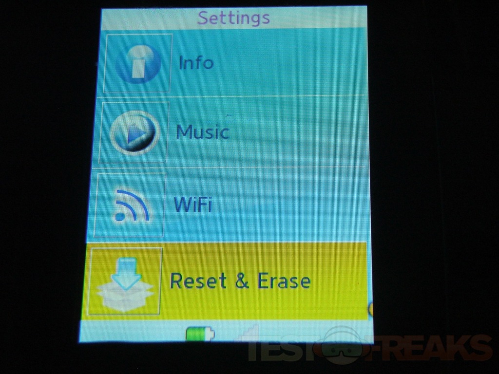 Under settings you’ll find options for Audio, Display, Info, Music, WiFi and a Reset Option.