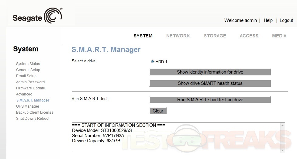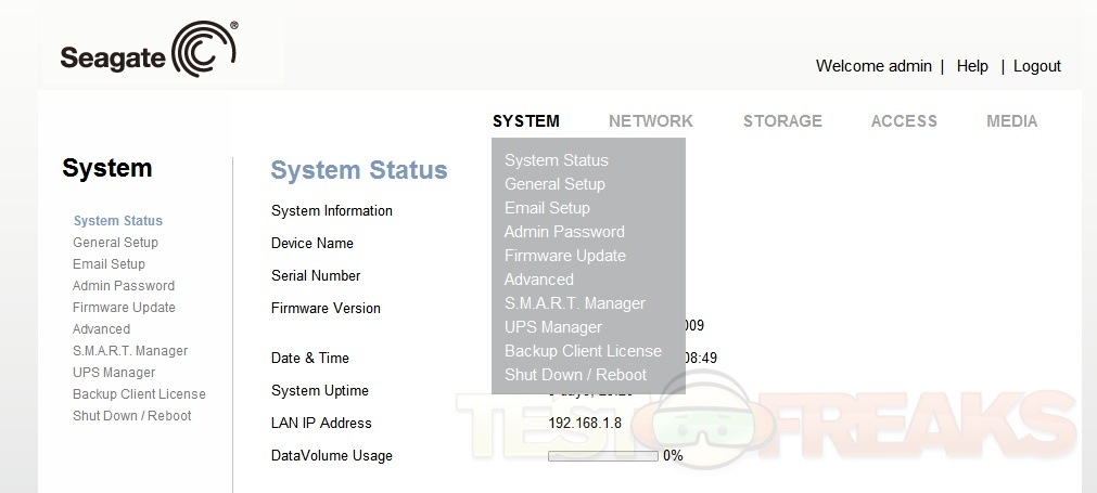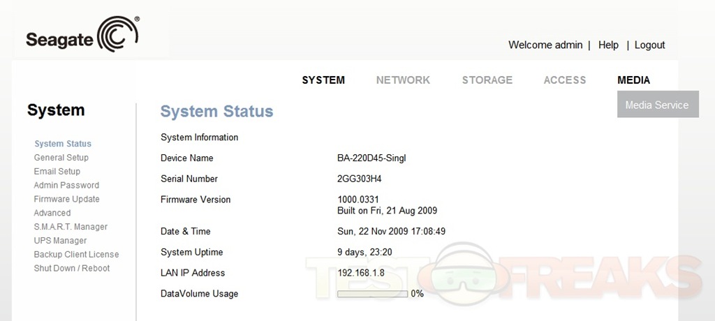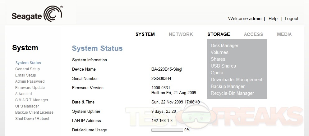 When you first log on you’re greeted with the System Status that tells you information about the BlackArmor NAS110.