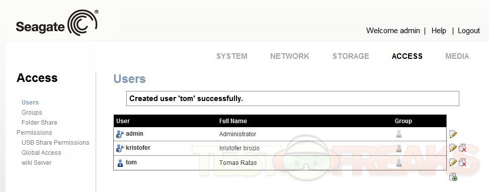 Under the Users Tab is all things related to the Users on your Network, you can add them and setup what they can or cannot access and do with the BlackArmor NAS110. You can also setup or link your Global Access account to the NAS110, and access and create your very own Wiki Server.