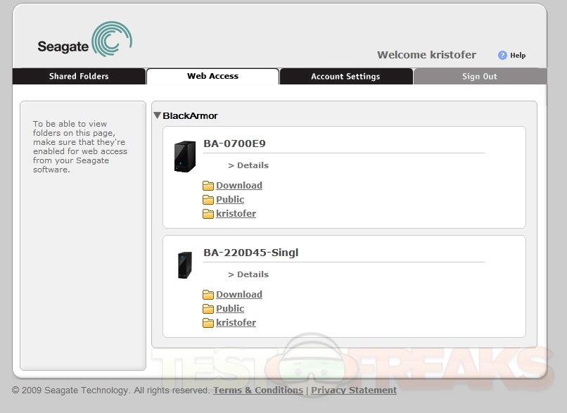 At first I wasn’t sure about the Global Access part of the BlackArmor NAS Series, but I’ve come to like it. It allows you to access your BlackArmor NAS from anywhere via the Seagate Global Access site. It’s a secure site, and it takes the guess work out of trying to setup your own web server, you just link the NAS to your Global Access account the BlackArmor does everything automatically for you. Very easy and simple, everyone can access the BlackArmor just by going tot he website.