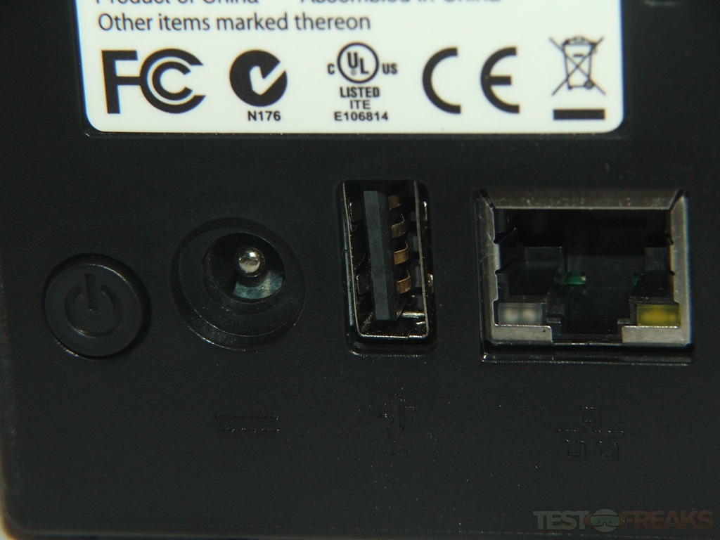 On the back you’ll find the power connection, power switch, one USB port, Ethernet port and a reset switch.
