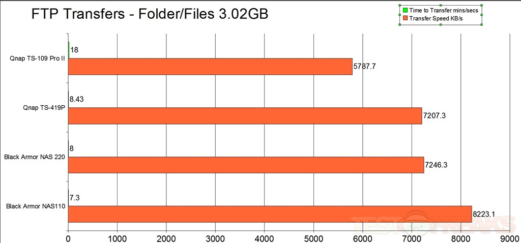I decide to run three tests on The BlackArmor NAS110 and the NAS220, along with the Qnap TS-109Pro II and the Qnap TS-419P as well.