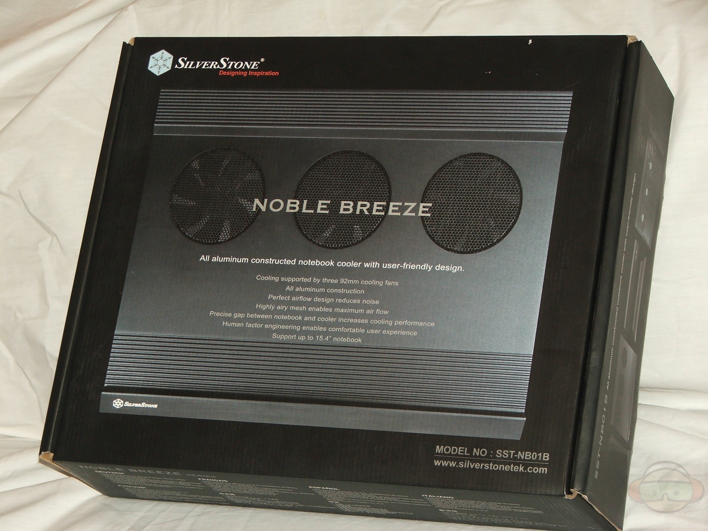 Noble breeze NB01, SilverStone’s first notebook cooler product, is designed with stylish appearance constructed of perforated mesh and all aluminum body. It can be seen as a must-have product for notebook user. For SilverStone, innovation is more than feature improvements; it is about improving total user experience. Therefore, in order to reduce the wrist, neck, back and shoulder stress resulted from using the notebook, SiverStone NB01 is designed based on human factor engineering in order to provide a more comfortable user experience. The 12 degrees of tilt is designed for long-term use and gives NB01’s 4-way intakes plenty of airflow to enable maximum cooling performance while keeping the noise to a minimum. Supported by three 92mm cooling fan with precision gaps between NB01, the notebook, and the mesh locations, the NB01 is the best choice for users requiring a valuable notebook cooler.