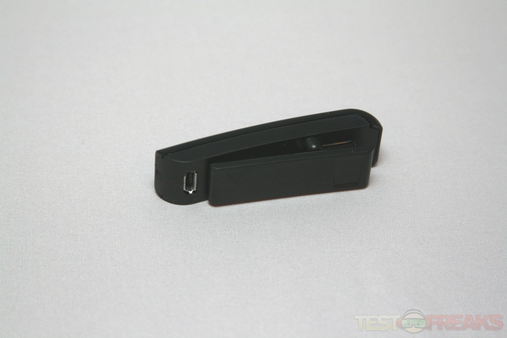 The Sound ID Remote Microphone has the piano black finish of the older Sound ID 300 and has the same main button, status indicator light as the headset. On the opposite side there is a clip instead of an ear-piece. Charging is performed via the micro-USB connector.
