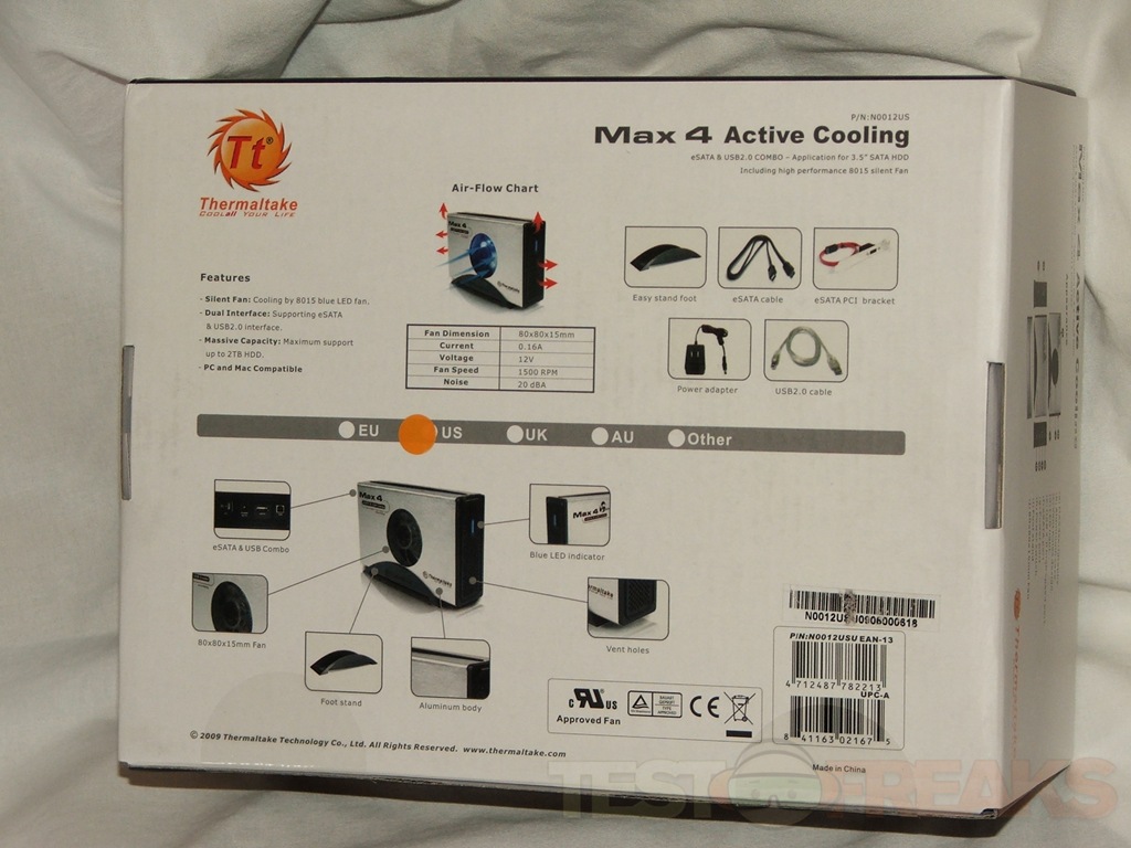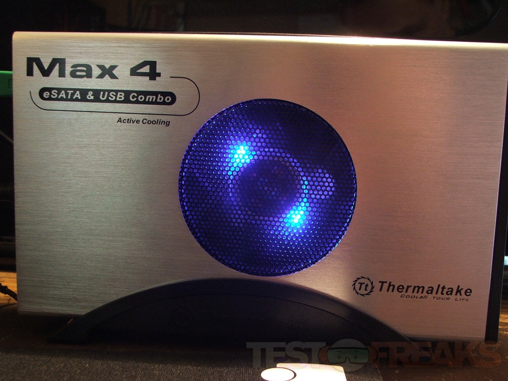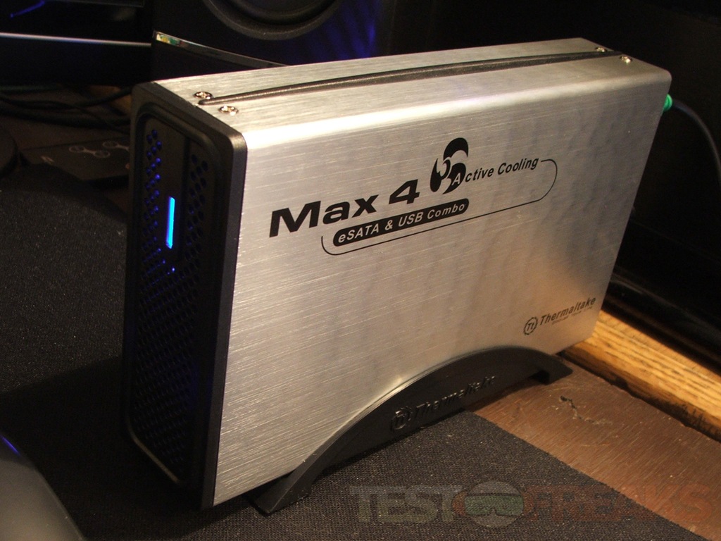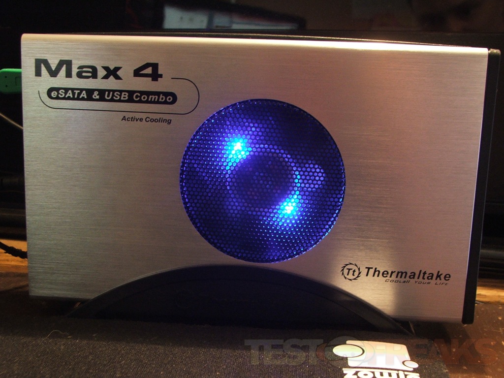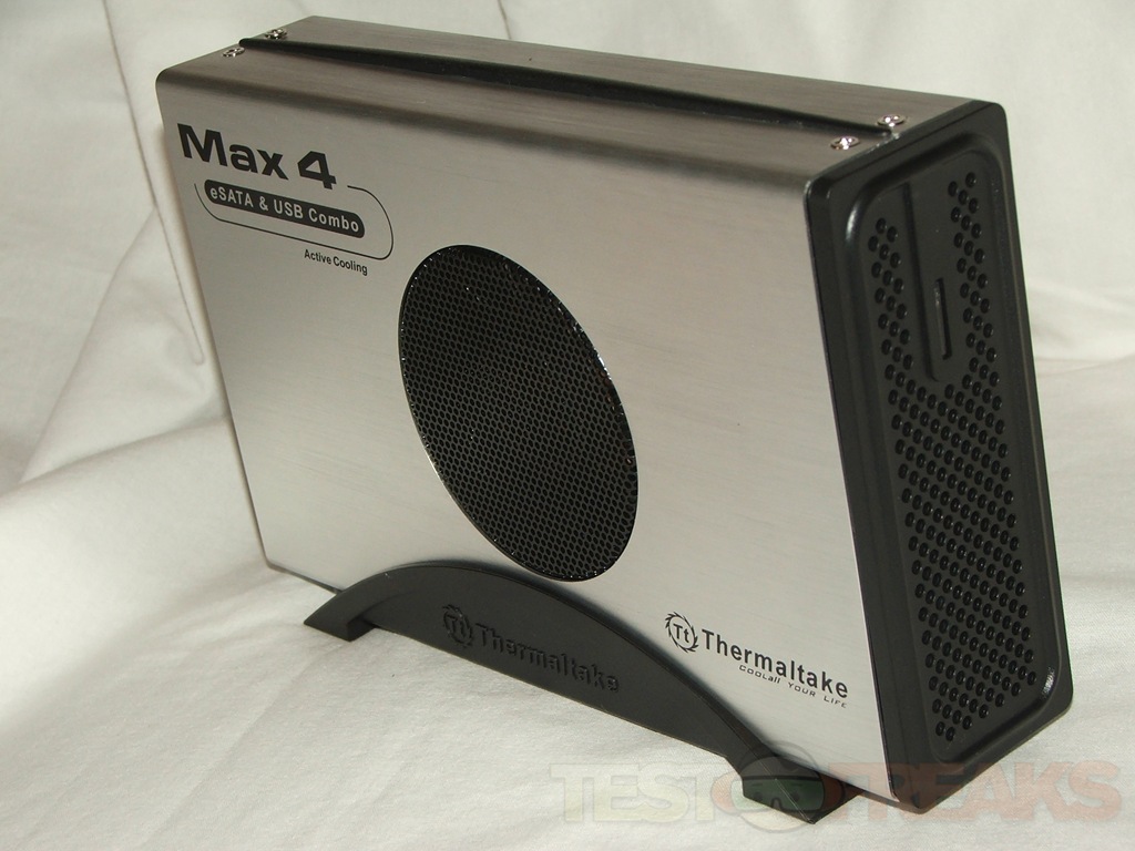 Up on the review block today I’ve got a 3.5” SATA hard drive enclosure, the Max 4 from Thermaltake. This enclosure features both eSATA and USB connections along with a built-in 80mm cooling fan and an aluminum housing to make sure things keep cool. The Max 4 is well made and it’s very easy to install your hard drive into, a few screws and you’re done and ready to transfer your files. So read on to learn more about the Max 4..