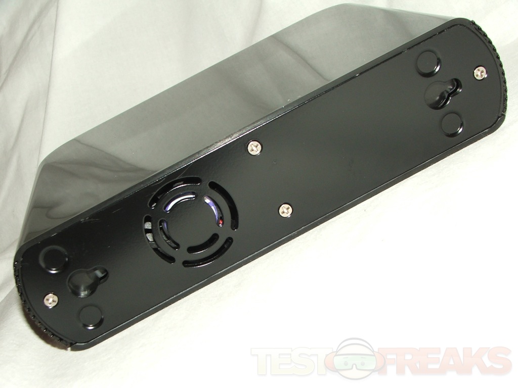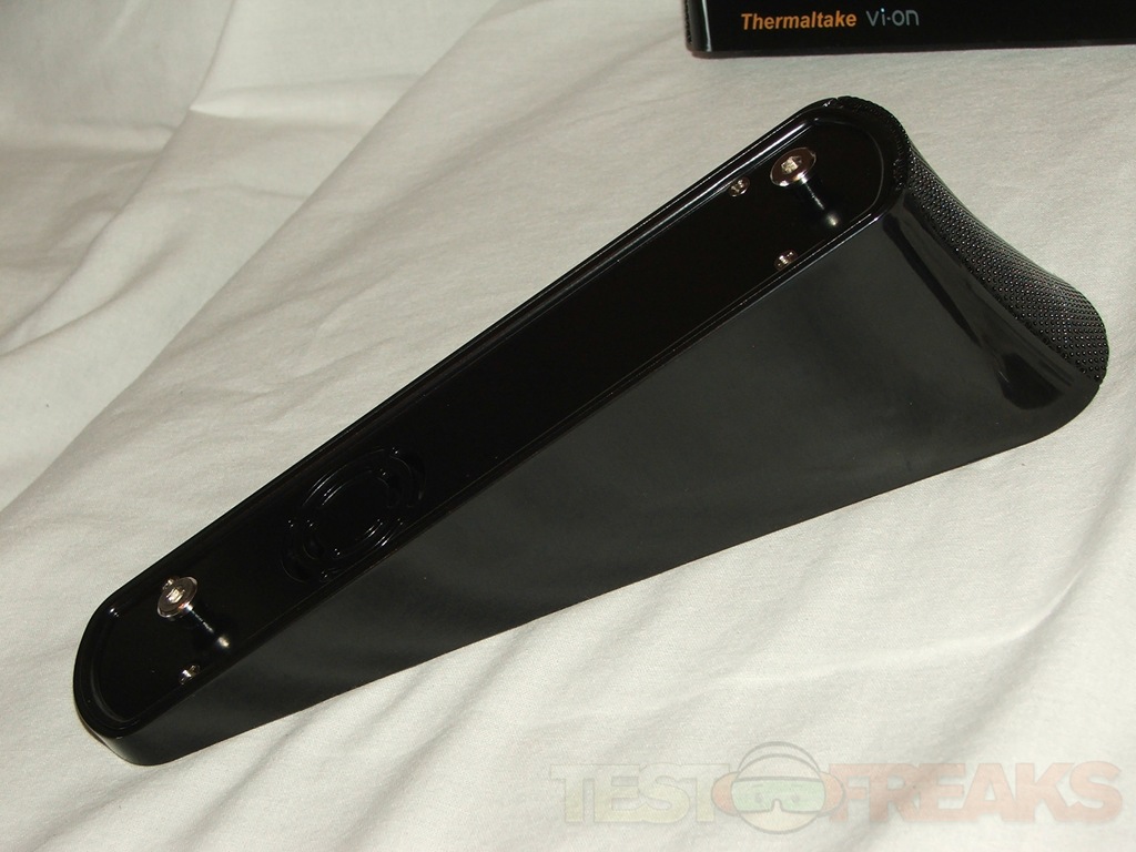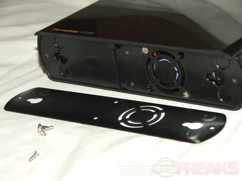 On the bottom you’ll find four screws that attach a metal plate to the bottom of the unit, this plate serves as a way to secure the side of the Vi-on in place, you must remove the plate to access the inside. The plate also features a cut-out for the fan and cut-outs for the bolts on the base to secure it to the stand.