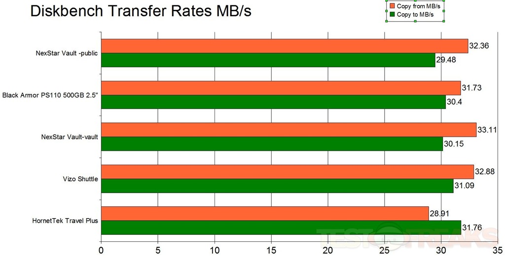Hmm.. I see I spelled Public wrong in the graph.. oh well.. Publix is supposed to be Public.. Anyway, as we can see the Vizo Shuttle enclosure actually has the best performance, according to Sandra. Let’s move on and see what DiskBench has to say: