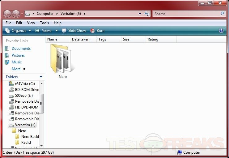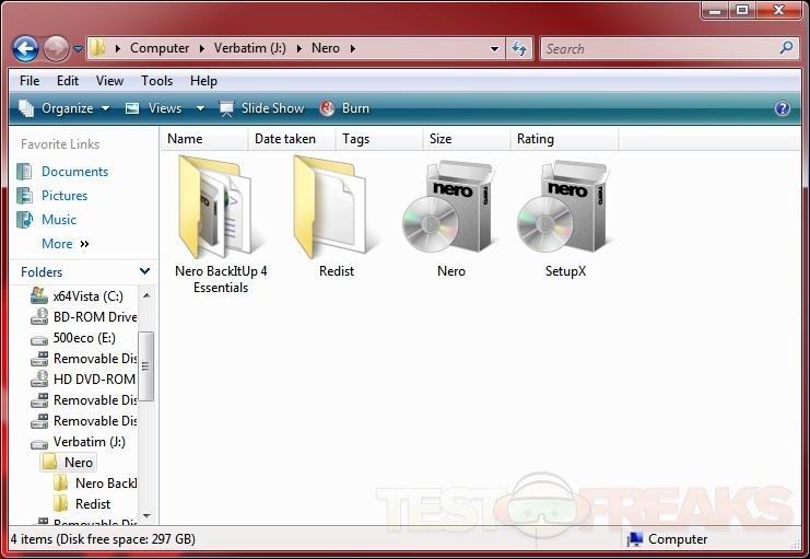 So we know it’s a fast drive, but not only is it fast but it comes with some software for you as well, Nero BackItUp 4 to help you use the Verbatim Clon drive to back up your stuff. Accessing the drive we find one folder, then opening that one allows you to install the software to use.