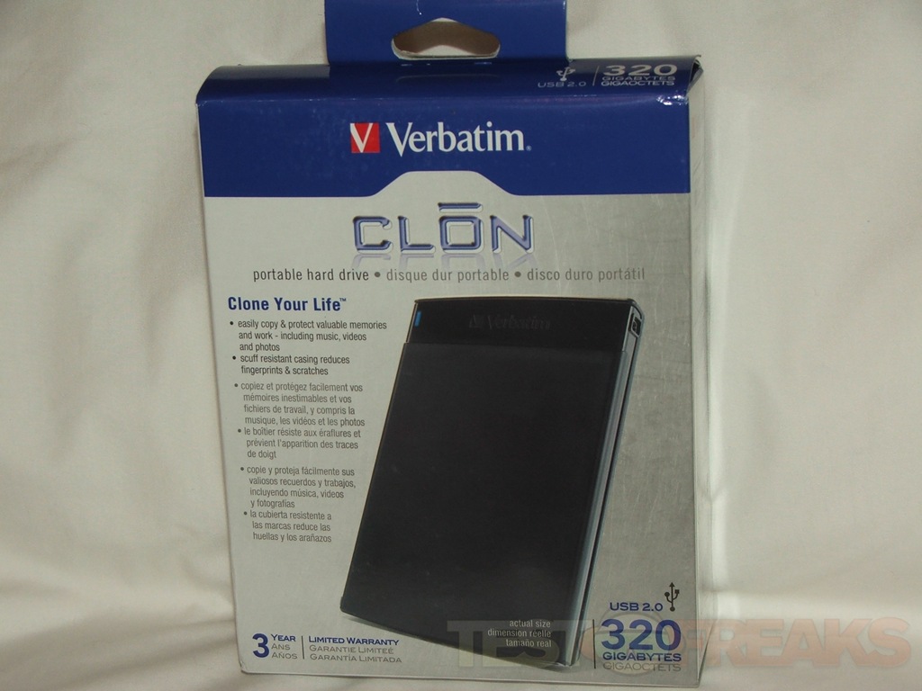 Today for review I’ve got the new Verbatim CL?N 320GB portable hard drive. It’s a 2.5” drive encased in a black plastic shell, it’s one of the smallest I’ve had the please of reviewing and one of the fastest as well. Included on the drive is Nero BackItUp 4 so you can easily, quickly and even automatically perform your backups. I’ve put it up against two other portable hard drives I’ve got on hand for comparison, and I found that the Verbatim CL?N drive is the fastest of the bunch, and also the smallest, so read on to learn more..