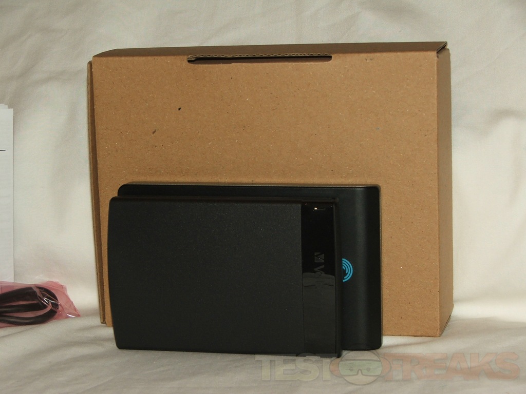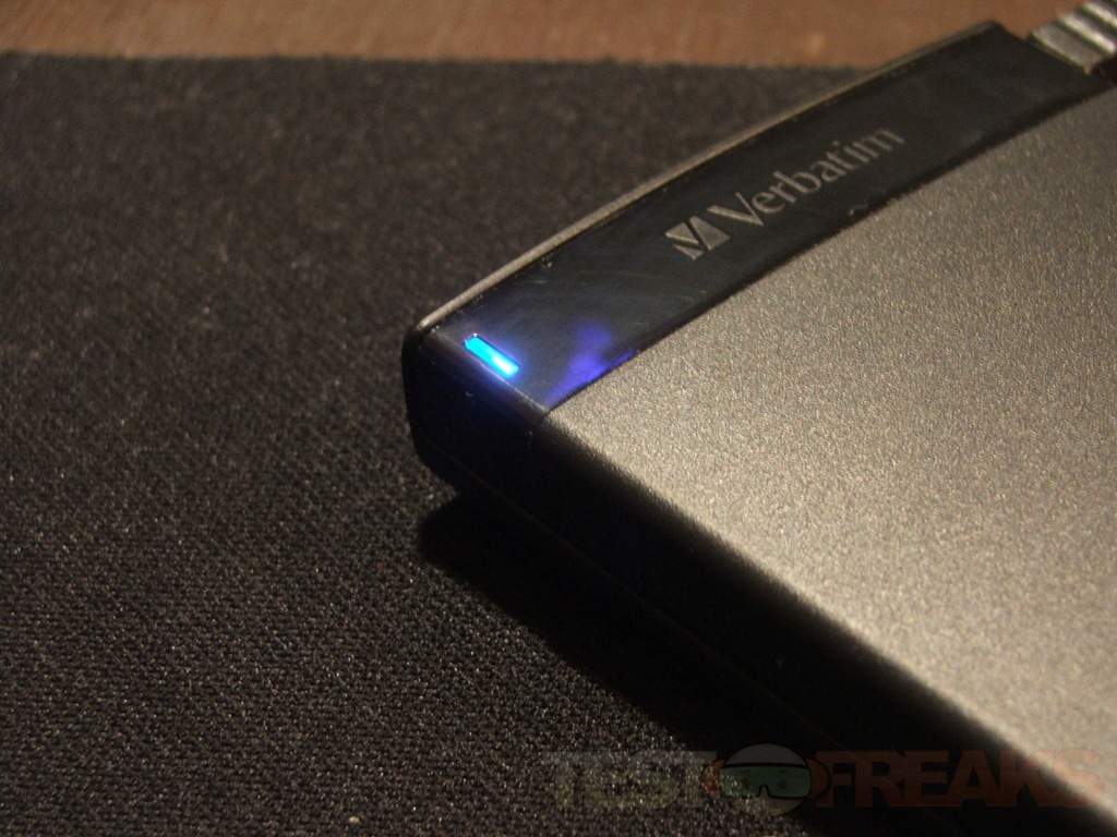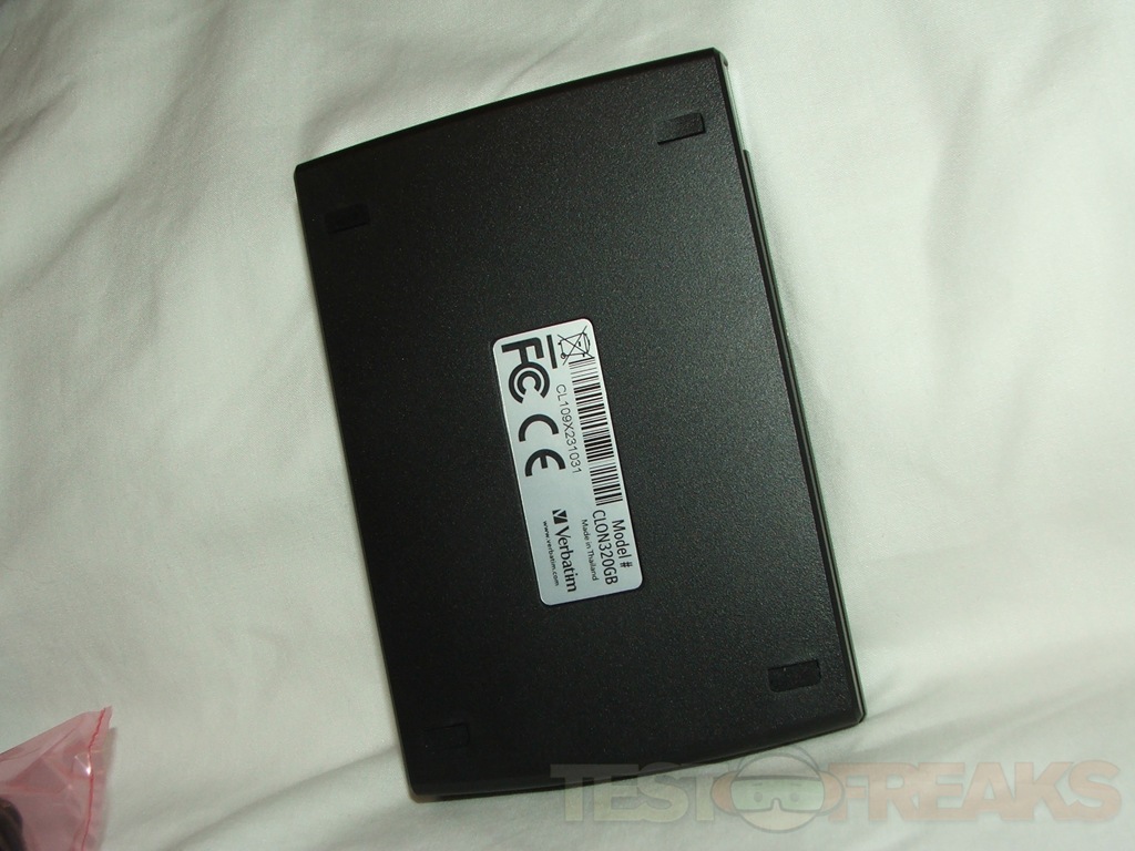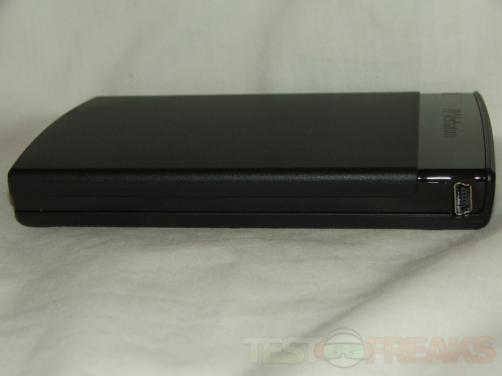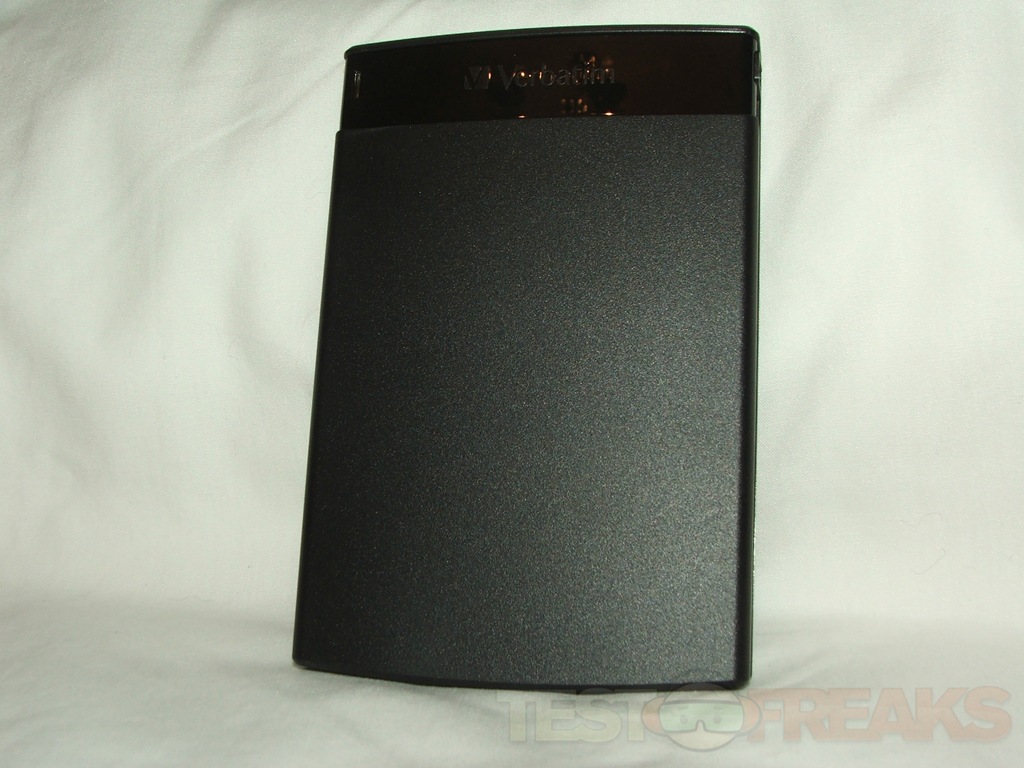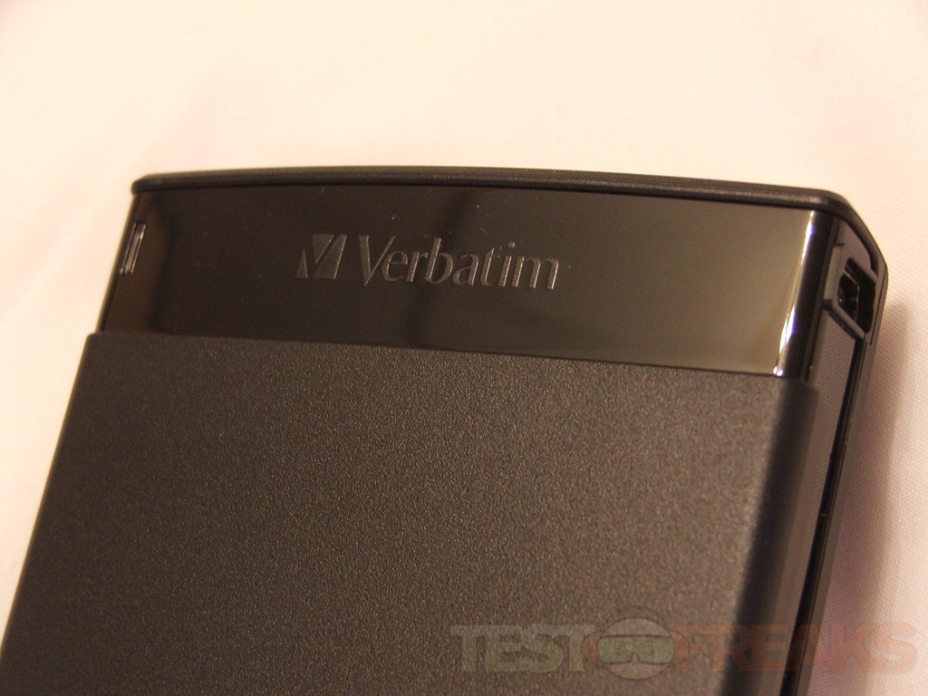 The Verbatim CL?N is all black with the Verbatim name at the top, the USB port on the side and four rubber feet on the bottom