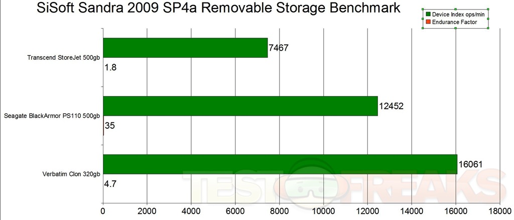 Next up I ran SiSoft Sandra 2009 SP4a Removable Storage Benchmark, and here again we see the Verbatim drive just smokes the others…