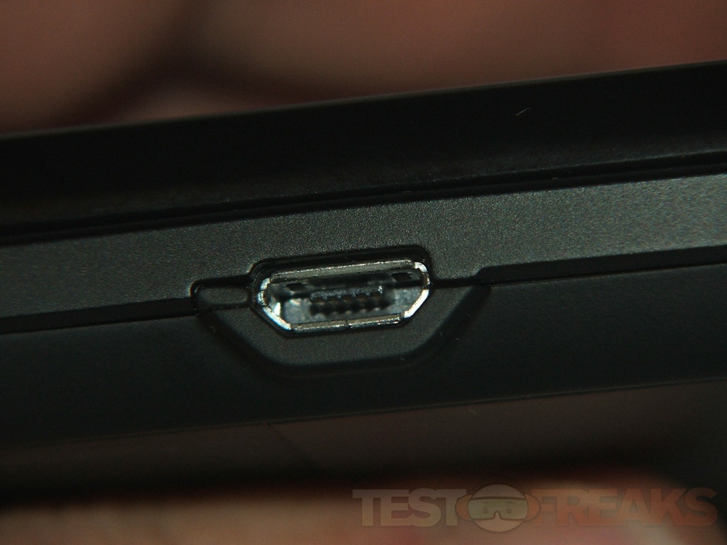 There aren’t many button on the Droid. The top is where you’ll find the power/lock button and the 3.5mm audio jack and the left side has the USB port.