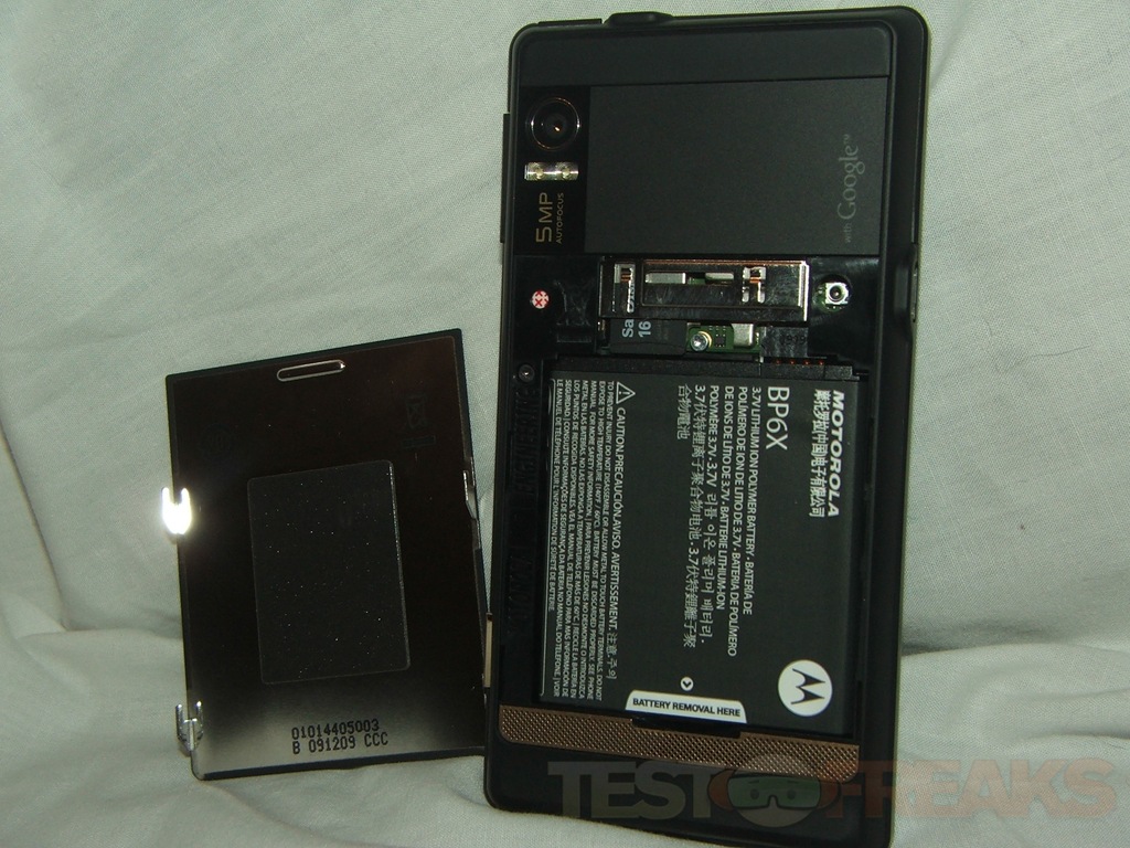 A nice surprise is that a 16gb microSD card is included with the Droid, that should be more than enough for most anything you need to take with you. The microSD card slot is under the battery cover, but you’ve got to remove the battery to access the card. I don’t like that at all, why should I have to power down the phone to access the memory card?