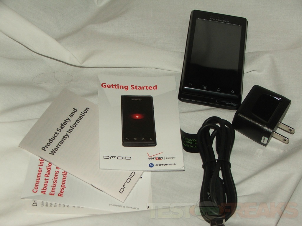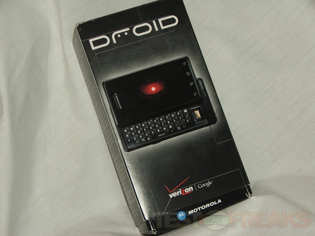 The Droid arrived in a small box, it’s a presentation style box that slides off to reveal the phone.