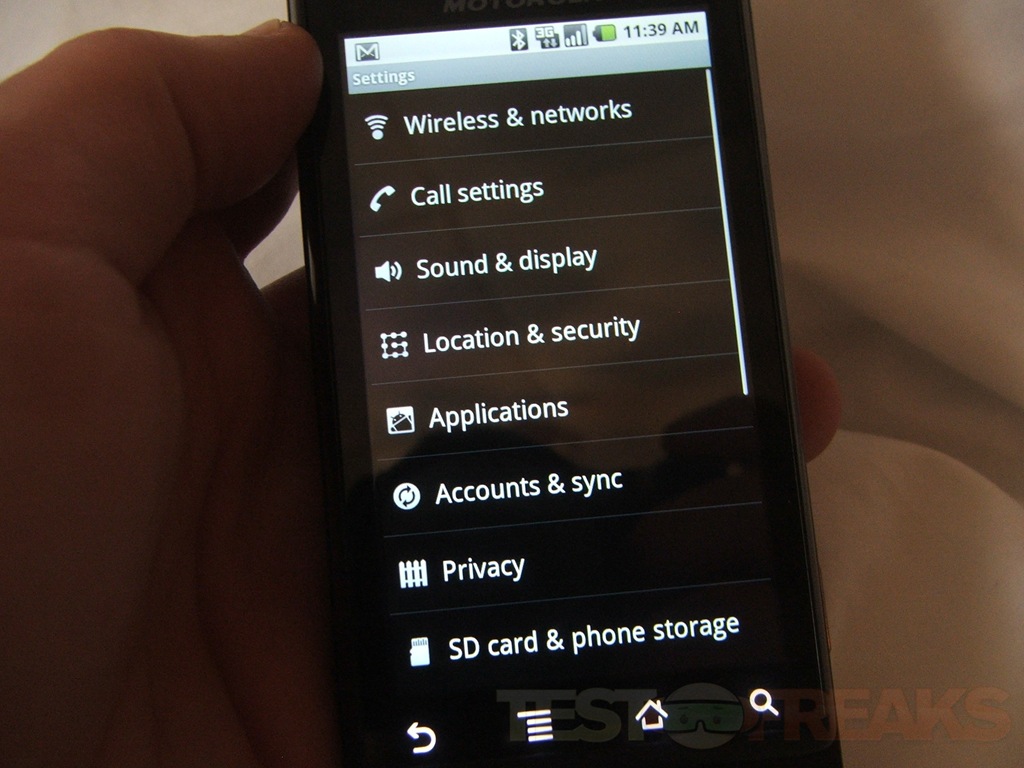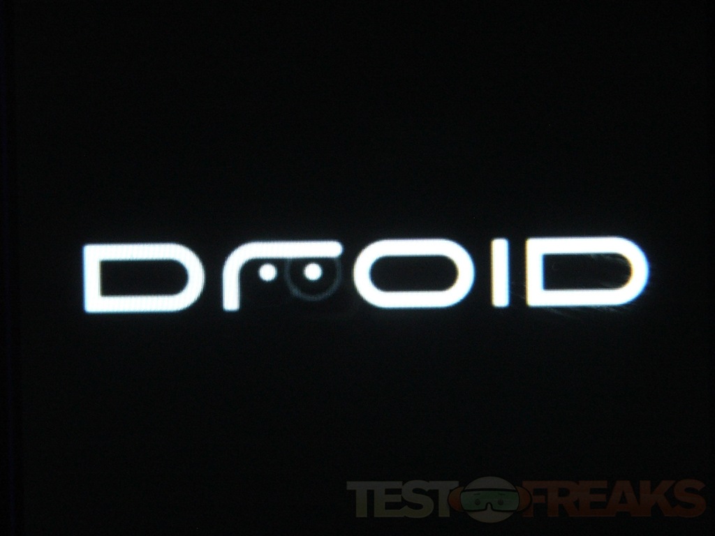 When you power up the Droid you’re greeted with the Motorola logo, the Droid log and the HAL style Droid symbol.