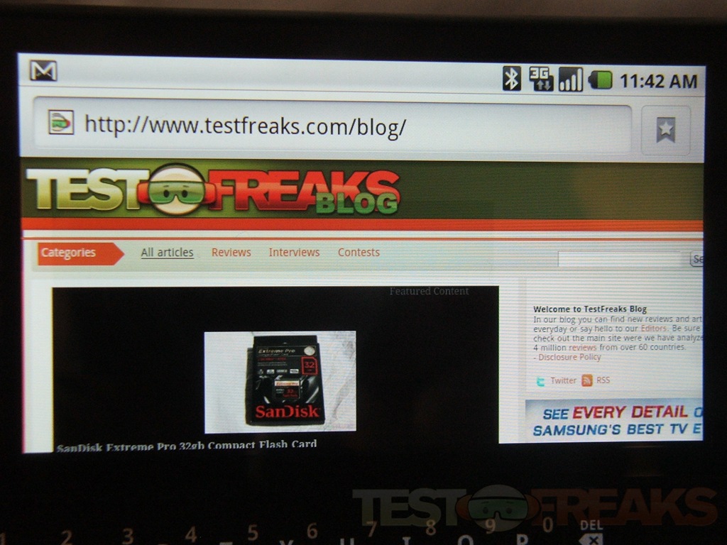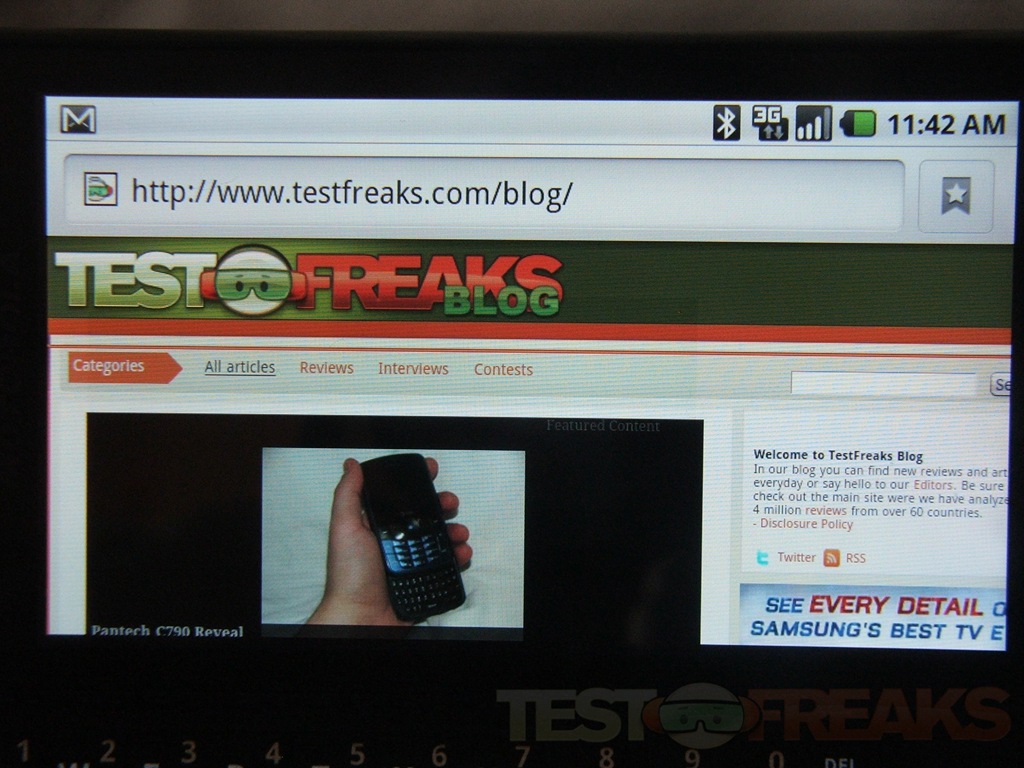 The web browser is fast as was accessing the Verizon network and it has the now common zooming feature. Websites look clear and readable even when not zoomed in. Load times seem fast, but that also has to do with the website itself. There is no flash support yet for the browser, I tried to go to Hulu and watch something but it said I needed the plug-in which isn’t available yet according to Adobe.