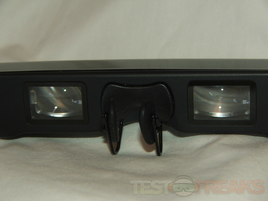 The Vuzix AV310 took quite a bit of playing around to get them to fit comfortably, you’ll be spending a while adjusting them and then readjusting them to get them comfortable and have a good view of the screen with both eyes. I wear contacts most of the day so it was no problem putting them on, at night time though I usually take my contacts out and switch to my glasses. The point here is that I decided to experiment a bit, I didn’t use my contacts or my glasses with the Vuzix AV310, I was able to adjust the focus to be able to see perfectly fine with the Vuzix AV310 only. Then again, my eyes aren’t that bad, so that might not work for everyone, that’s just my experience with it. One thing though that did bother me throughout the entire time watching was that if I moved a bit I got part of the center of the Vuzix AV310 in my field of vision, it was kind of annoying really, it’s almost as if the displays were a bit too far apart for me.