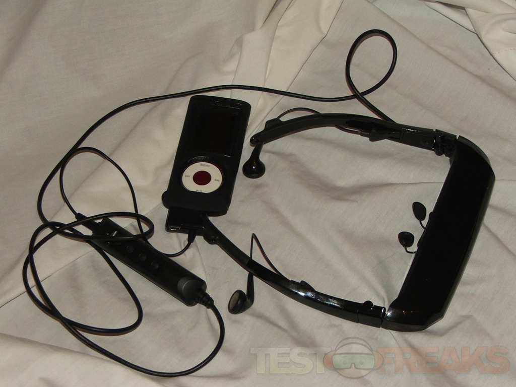 I really can’t show you how these look when they’re playing a movie obviously, but I used my Apple iPod nano 4th Gen to watch a 300 and an episode of Witchblade with the Vuzix AV310. One note is that the nano 4th is not on the list of supported devices, but it worked perfectly fine for me. My iPod is housed in an Otterbox Defender, that’s why it looks a bit different…